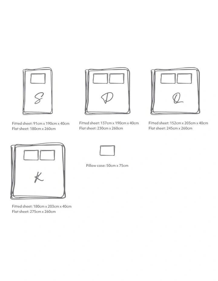 Single fitted sheet: 91cm x 190cm x 40cm