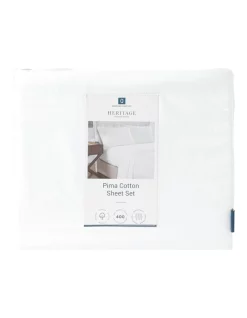 Freshen up your bedroom with our Heritage 400TC Pima Cotton Sheet Set. Crafted from cotton, this sheeting provides a soft hand feel and breathability for a perfect nights sleep. Available in a variety of colours style back with your choice of quilt cover and cushions.Β