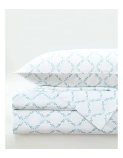 Grace is a delicate trellis pattern of laurel leaves printed on a crisp white cotton ground. The soft pattern works very well to add layered details to any bed.